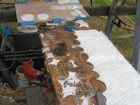 After it set , I ground and cleaned the inside and outside ready for the fiberglass matt to be used as filler.