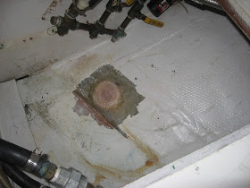 As those who have been following along know, I am replacing some thru-hulls and relocating others, so I am left with six holes through the hull that need to be filled/repaired well enough that I can sleep well knowing they will never pop out. I do not claim to be any kind of fiberglass master but after reading and examining multiple ways to make this repair.....this is how I am doing it.