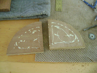 Next, I epoxied blocks to the backs of the valances. Then I drilled pilot holes up thru the blocks and into the mount points. Screws hold the valances in place - accessible but not visible. (Note: when gluing teak, always wipe it down carefully ahead of time with acetone to remove the waxy teak oils from the surface.)
