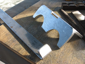 Next stop Lindow’s Machine Shop on Hwy 70 outside of Beaufort, NC. Yup that is right... a straight up plug for Lindow’s. Fred Lindow, owner and sole employee, has many years of personal experience on sailboats. He does excellent work at reasonable prices. Fred transferred the template to the metal, and then used a band saw to cut out the wrench.