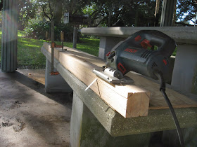 In which Ken of s/v Painkiller constructs spars for a Dyer dinghy on a park picnic table, using only hand tools...